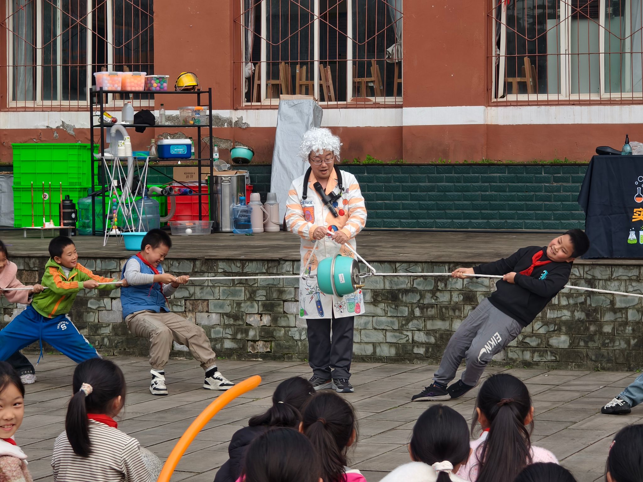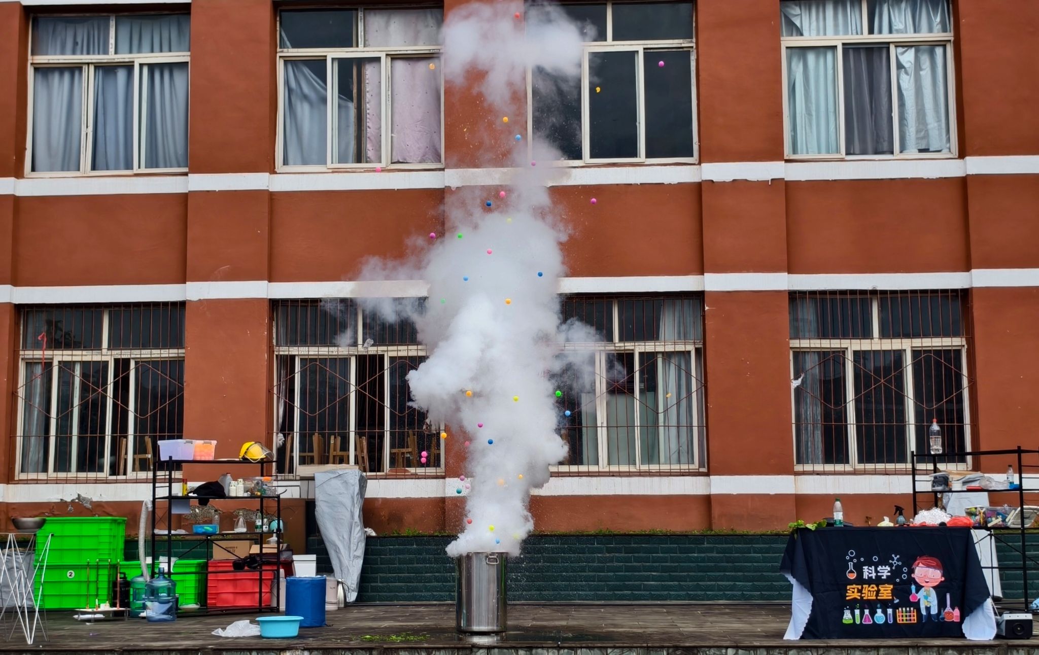 在罗田小学及沙河小学活动现场,魏勇博士带领科普团队化身“科学魔法师”为同学们呈现了丰富多彩的科学实验秀,包括“空气大炮”“马德堡半球”“大气压的威力”“气流悬浮球”“水顶球”“干冰泡泡”“云雾瀑布”“液氮大爆炸”等精彩科学实验。通过直观生动的实验演示和互动体验,同学们在惊叹声中感受了空气动力学、伯努利原理、物质状态变化等科学知识的魅力。